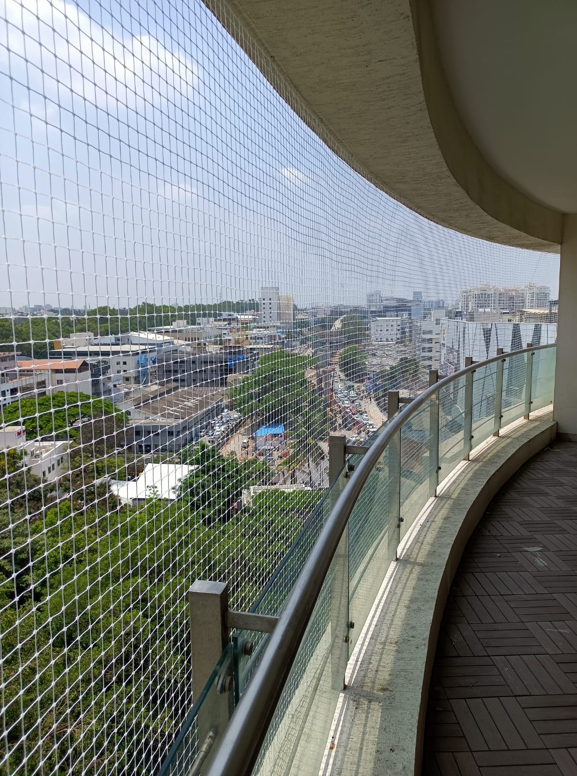 We are the skilled experts in fixing Safety nets for Balcony Safety Nets, Pigeon Safety Nets, Anti Bird Nets, Pigeon Nets for Balconies, Cricket Net Practice, Kids Net for Balcony, Construction Safety Nets, Duct Area Safety Nets, Building Safety Nets, Industrial Safety Nets, Swimming Pool Safety Nets Stairway Safety nets, Monkey Safety Nets, Terrace Top Nets, Glass Safety Nets, Car Parking Safety Nets, Coconut Tree Nets, All types of Safety Nets, HDPE Nets - Nylon Nets.
